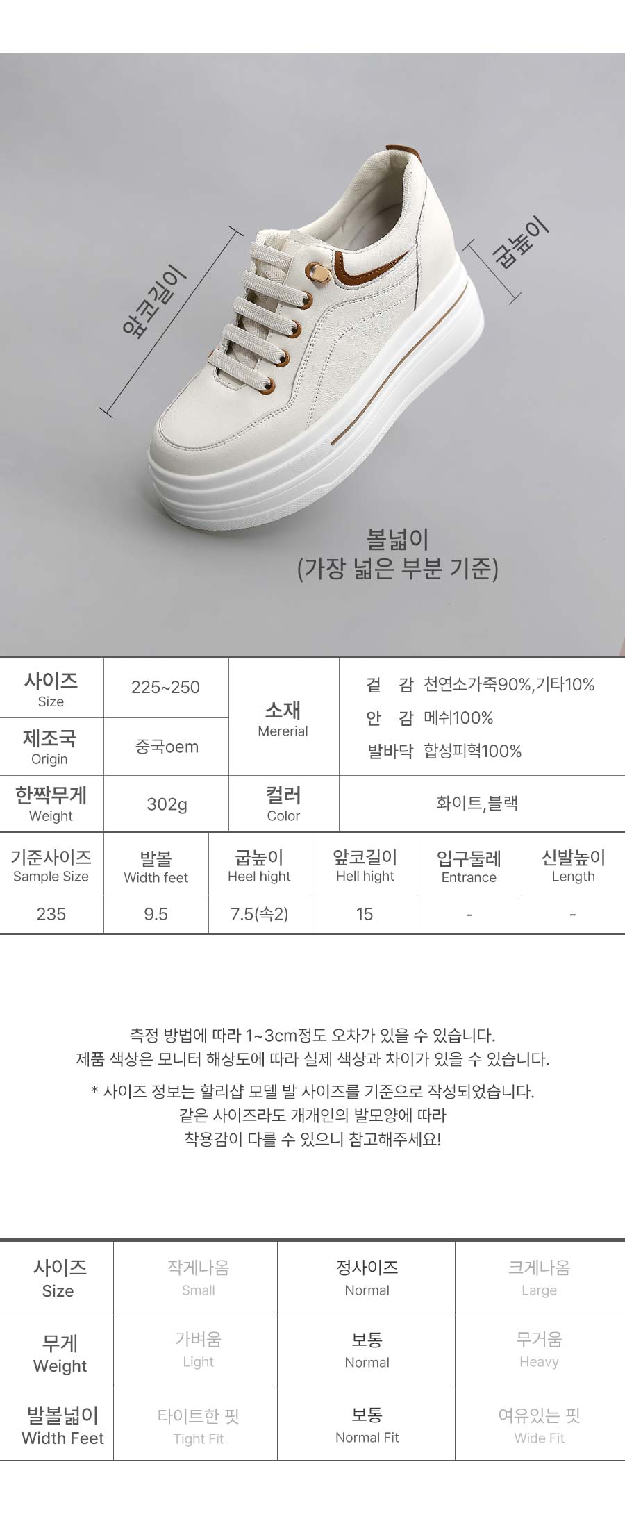 [소가죽] 데일리 플랫폼 스니커즈 7.5cm (109X5)