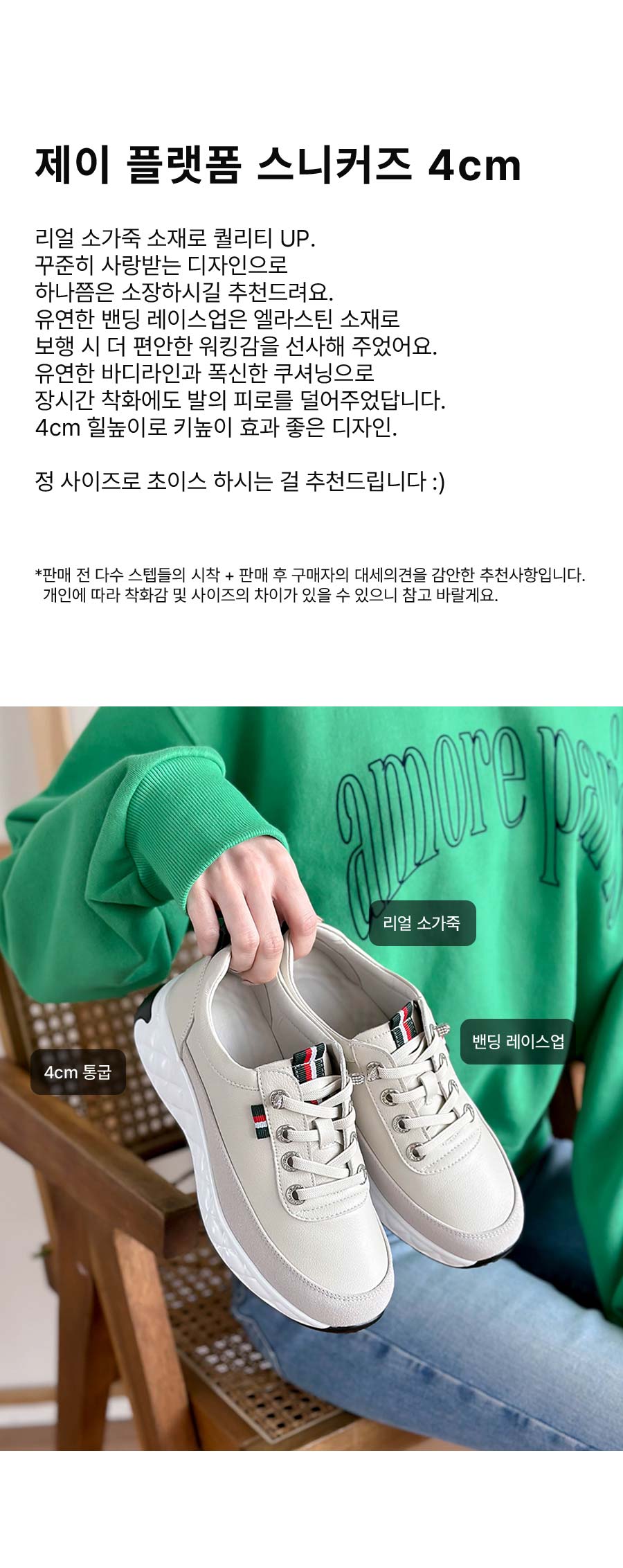[소가죽] 제이 플랫폼 스니커즈 4cm (116X9)